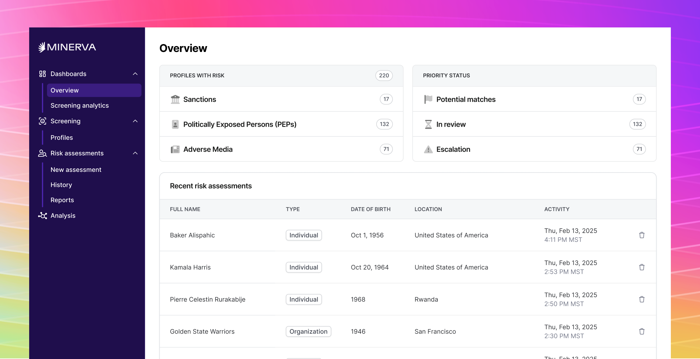 This new overview page was designed to provide a high-level view of what's happening in Minerva and help you quickly assess actionable items, eliminating the need to navigate through multiple screens.