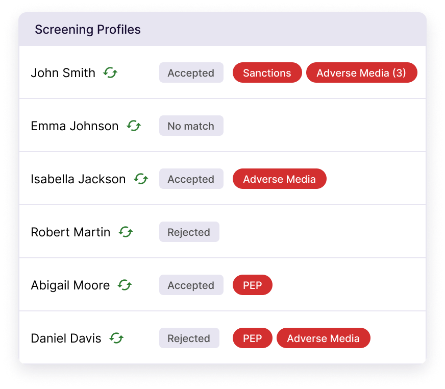 Minerva's AI-powered risk screening across Sanctions, PEPs, and Adverse Media delivers 75% fewer false positives, letting compliance teams zero in on actual risks that matter.