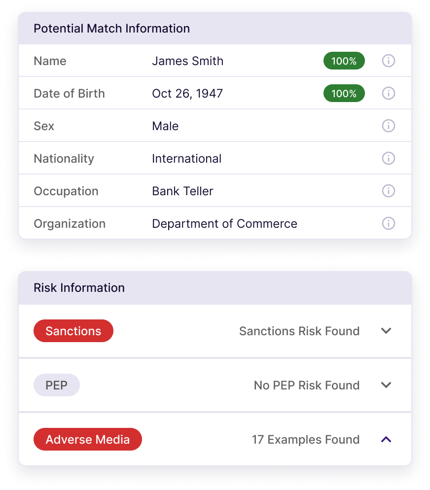 Minerva’s screening engine is best-in-class and reduces false positives by 75% so your team to focus on true risks.
