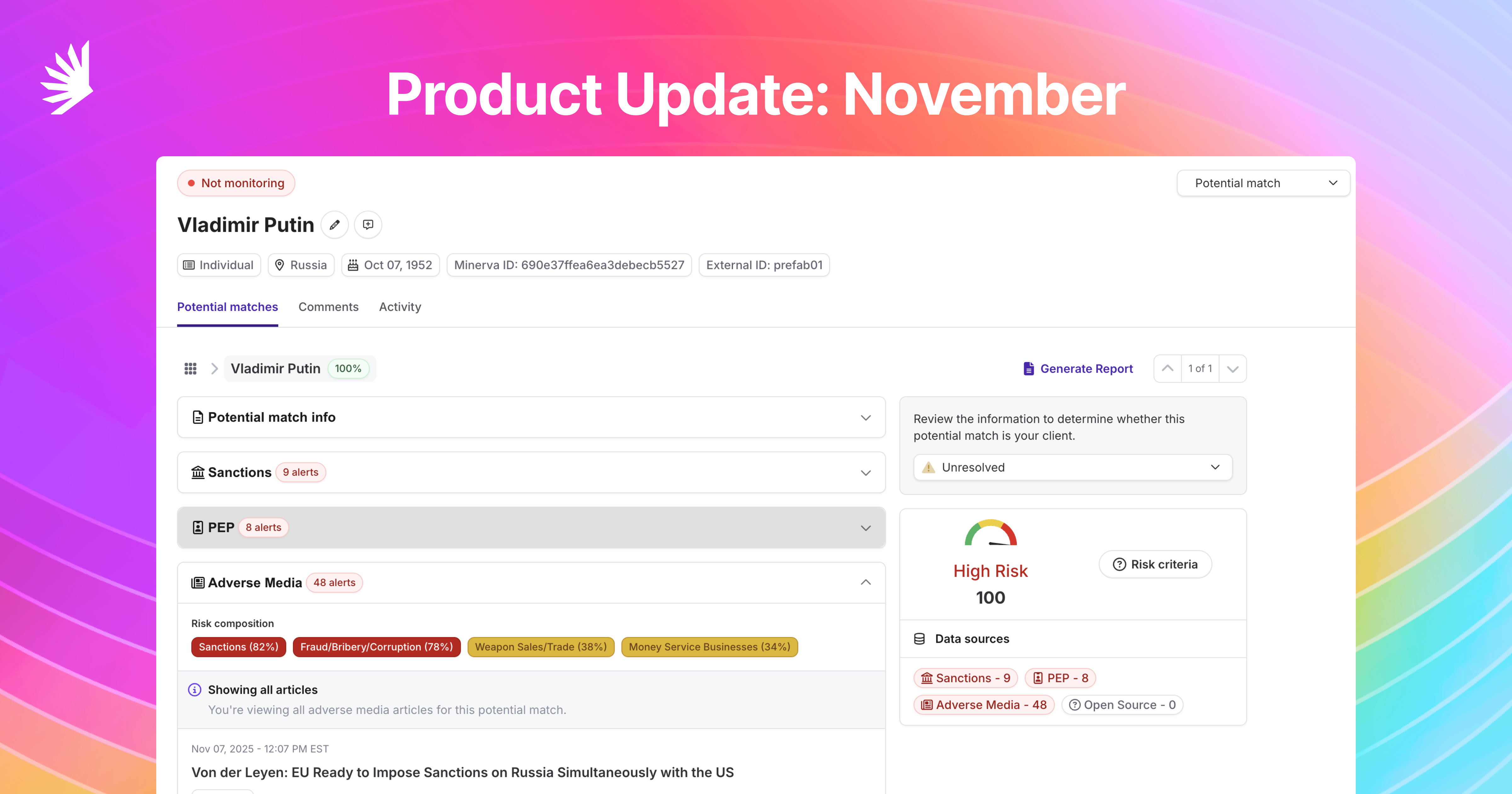 All the features detailed in this update are now available to Minerva customers.